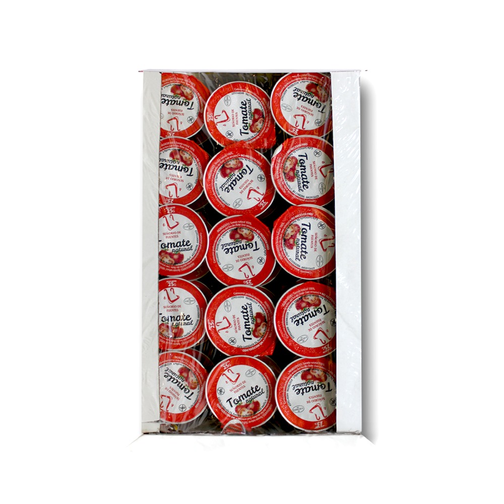 Cada monodosis contiene 25 g de tomate natural, elaborado sin conservantes ni aditivos, para garantizar un sabor fresco y auténtico en cada servicio.